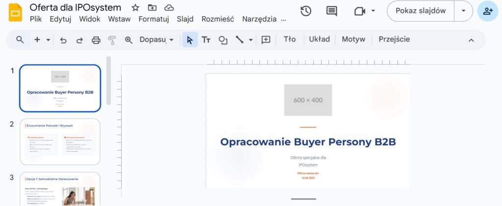 Następnie dopracowałem jego detale i całość wrzuciłem do Google Gemini aby wygenerować prezentację na spotkanie z klientem.
